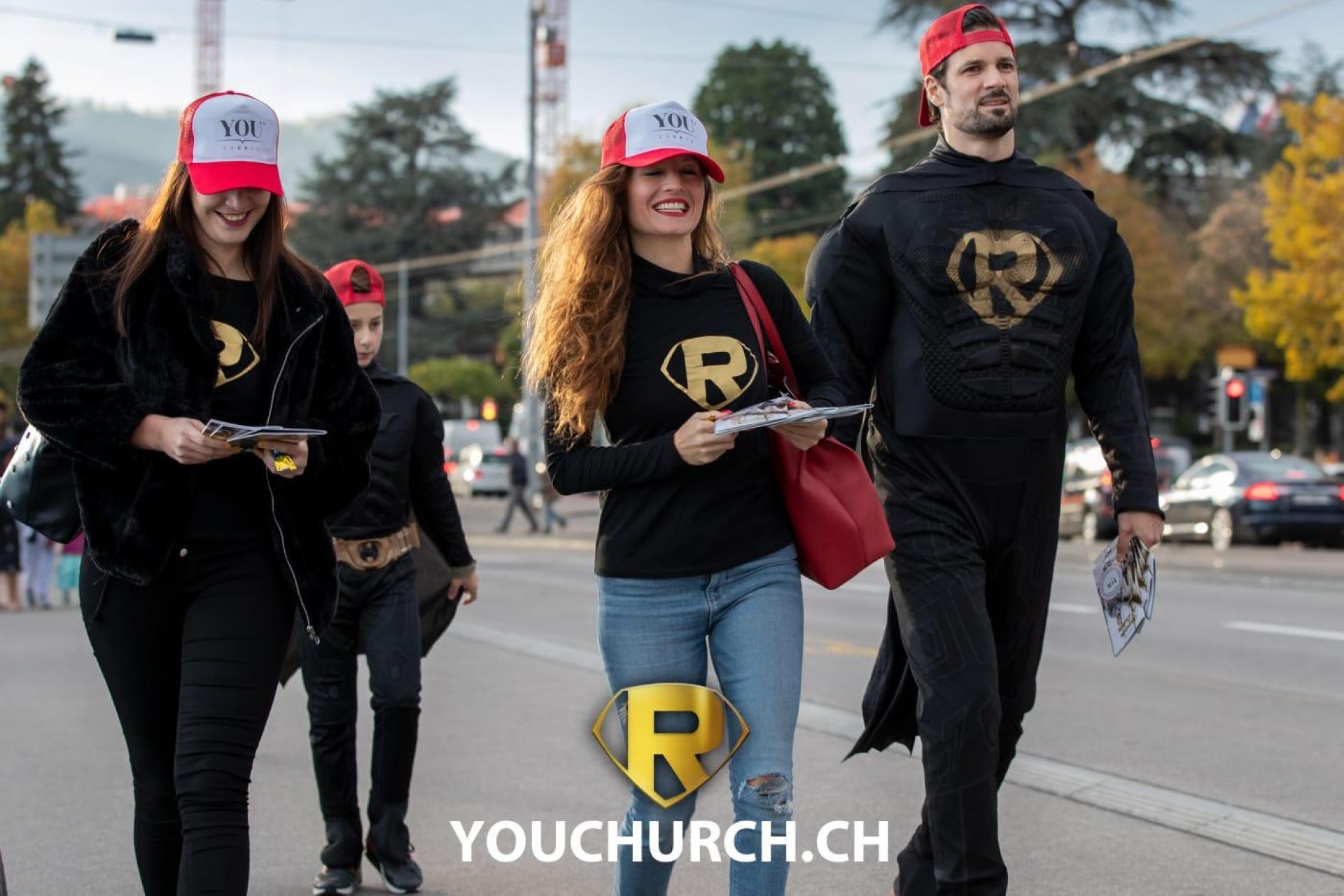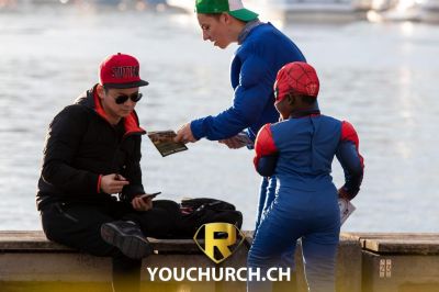 Als Superheros verkleidet verschenkte Gross und Klein das „Rhapsody of Realities" – die Nummer 1 unter den „Daily Devotionals" mit einer täglichen Message von Gott voller Glaube, Liebe und Hoffnung. Ob auf der Strasse in der Stadt, am See oder bei den Menschen zu Hause – jeder empfing die gute Nachricht, das Evangelium von Jesus Christus, denn Jesus kam für alle, damit jeder ein neues Leben empfangen und ein echter Superheld, ein Sohn Gottes, werden kann. Nach diesem „Rhapsody Outreach" war es Zeit, an unserer SUPERHERO Night den grössten Helden aller Zeiten zu feiern – den Sohn Gottes, der Sein Leben gegeben hatte, damit jeder errettet wird. Die Party brachte alle Lach- und Tanzmuskeln in Gang und brachte Jung und Alt Freude...